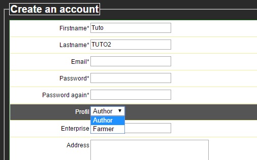 Select the profile “Farmer” to create a Farmer account that will be used during the seizure of floral samples.