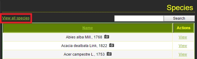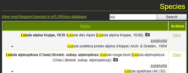 – Click on “Search” or “Enter” on the keyboard. The site then displays a list of species that contain the search term.