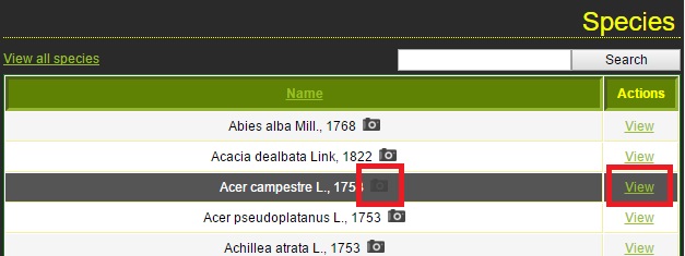 – You can quickly search for a species via the ‘Search’ box. The search can be done in Latin, French, English, German or Spanish for key names and synonyms. You can enter all or part of the name. If you can not find the species sought, try again without any accents or special characters (“é”, “à”, “ñ”, etc…)