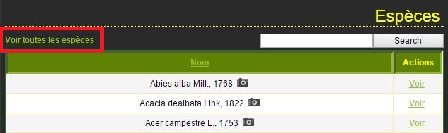 – Pour afficher l’intégralité des espèces floristiques de la base, cliquer sur “Voir toutes les espèces”
