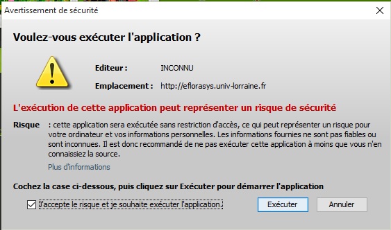 – Lors de l’ajout d’une image à l’étude, il est possible qu’une boîte de dialogue “Avertissement de sécurité” apparaisse. Cocher alors la case “J’accepte le risque et je souhaite exécuter l’application” et cliquer sur ‘Exécuter’ .