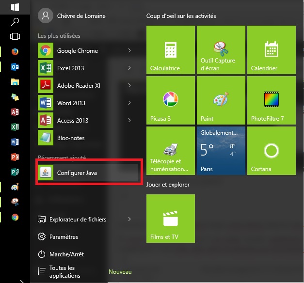 Si vous avez installé Java 8 ou toute version supérieure, il vous faut configurer Java pour autoriser l’exécution de l’application. Pour cela, aller dans le panneau de commande, et sélectionner “Configurer Java”.
