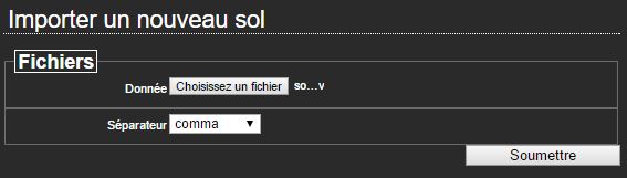 – Cliquer sur “Importation” dans le menu à gauche puis sélectionner “Importer un nouveau sol”