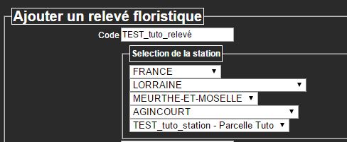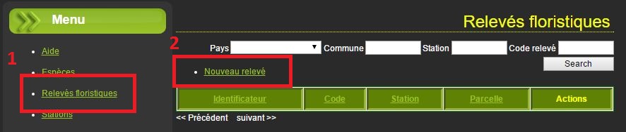 – Cliquer sur l’onglet « Relevés floristiques » dans le menu à gauche. Puis cliquer sur « Nouveau relevé »