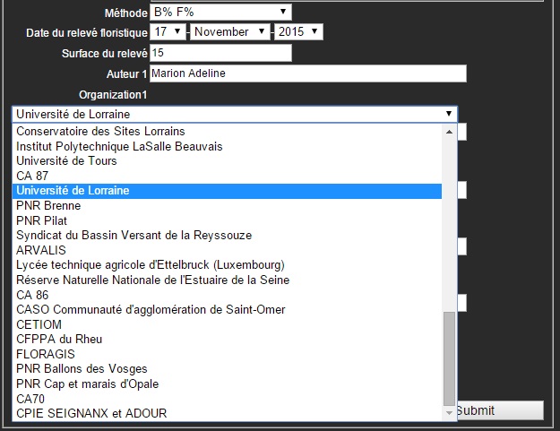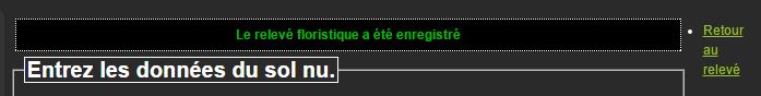 8. Cliquer sur le bouton ‘Submit’ ou sur la touche ‘entrée’ du clavier pour valider les informations relative au relevé. Un message de validation s’affiche en haut de la page.