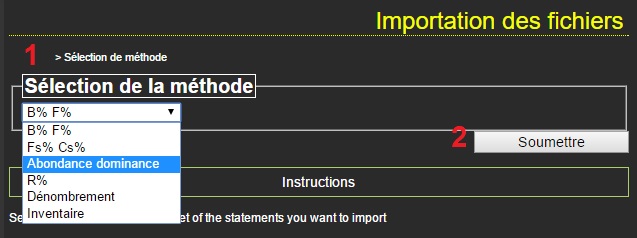– Sélectionner la méthode utilisée lors du (des) relevé(s) à l’aide de la liste déroulante, puis cliquer sur ‘Soumettre’