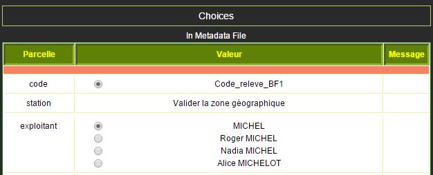 – Après validation du séparateur, une page de vérification intitulé “Choices” s’ouvre. Il est demandé de valider les informations concernant : les méta-données des relevés puis les espèces des relevés.