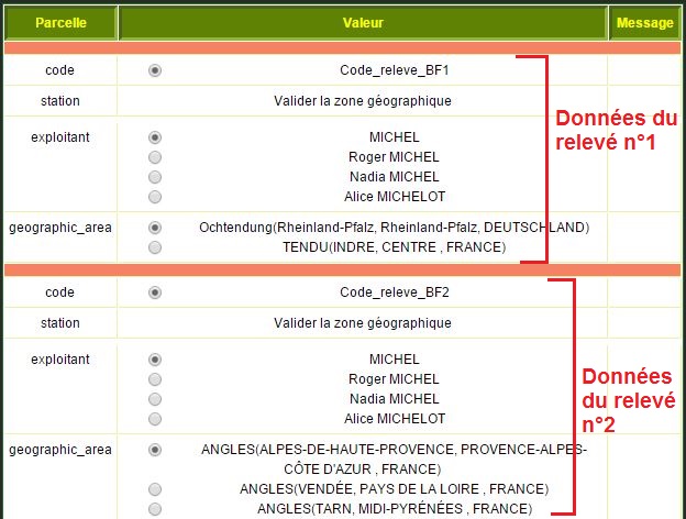 – Les informations de chaque relevé du fichier sont à valider séparemment. Les relevés sont séparés par une bande orangée.