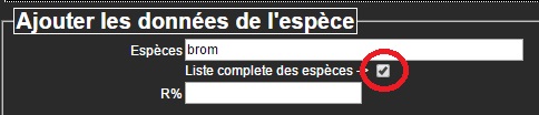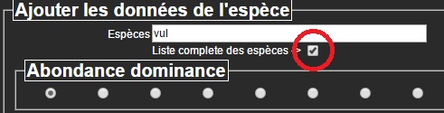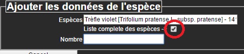 Au cas où l’espèce recherchée n’est pas dans la liste proposée, cocher la case « Liste complète des espèces »