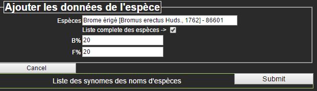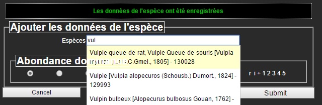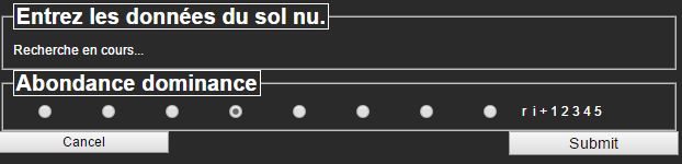 – Cocher l’abondance-dominance correspondante puis cliquer sur ‘Submit‘ pour valider.