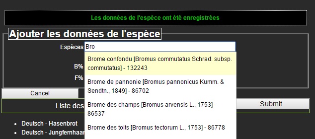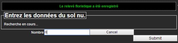 Recommencer l’opération autant de fois que vous avez d’espèces floristiques. Les données du relevé sont automatiquement sauvegardées sur un serveur de l’Université de Lorraine, et ce tout au long de la saisie.