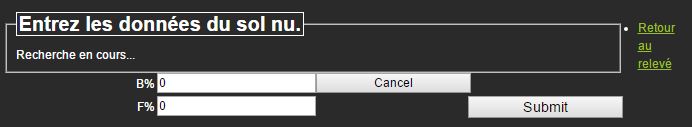 – Entrer les données B% et F% ou Fs% et Cs% puis cliquer sur ‘Submit‘ pour valider.
